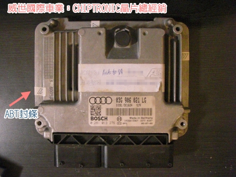 果然沒錯,ECU上還貼有ABT與原廠經銷商的貼紙,唉~ABT硬體很棒,但軟體晶片就要多多加油