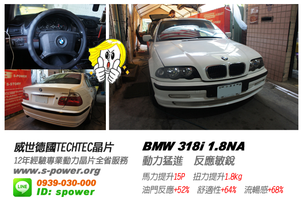 318I 自然進氣車款,車主是愛BMW的玩家,自己也開了一間修車廠,